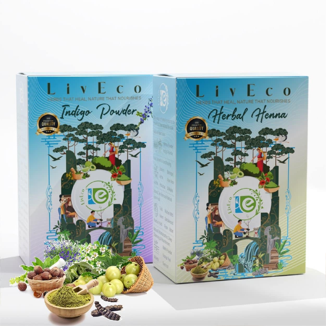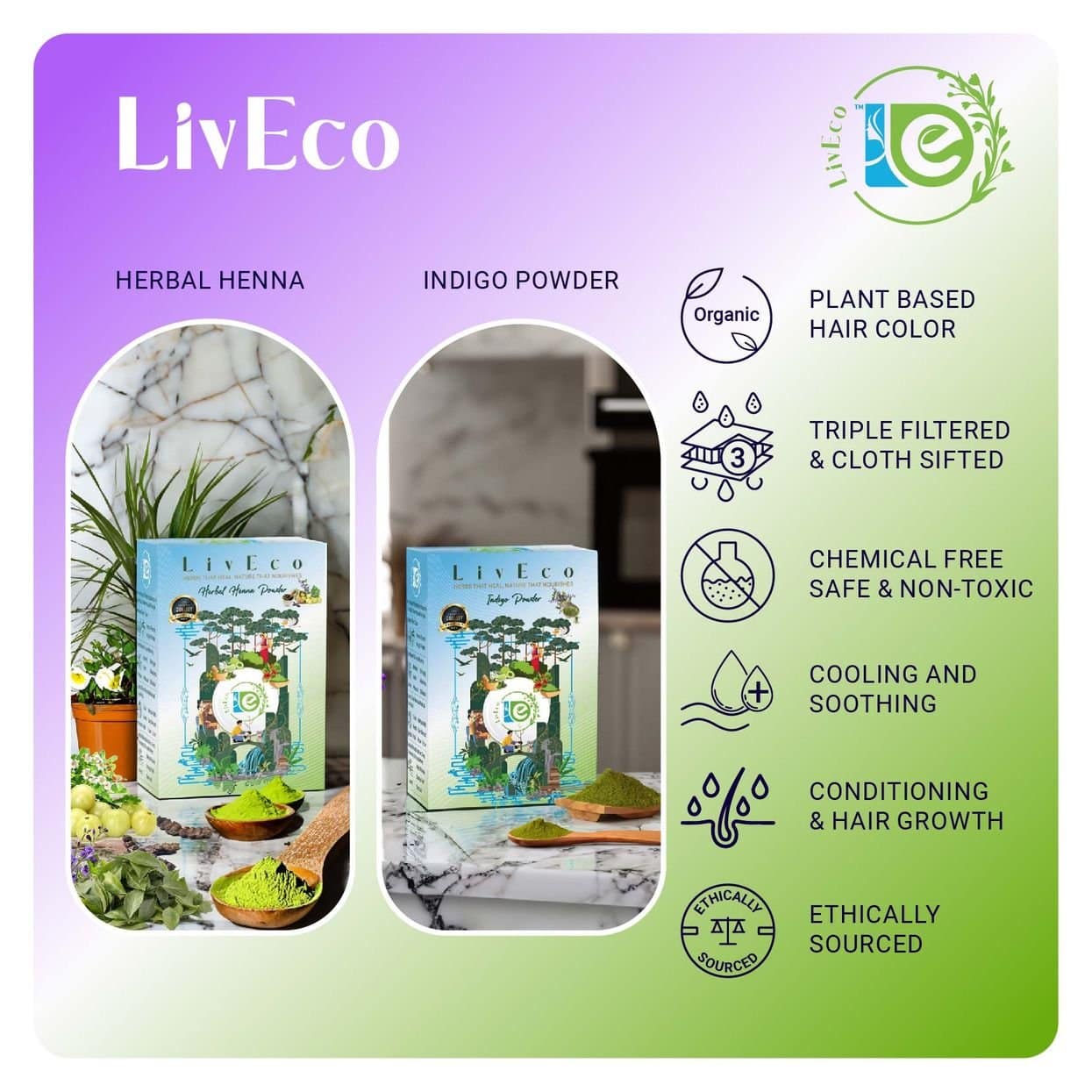 2 reviews for LivEco Herbal Henna Indigo Powder Combo Pack For Hair Color | 8 Herbs Mix Organic Mehndi Indigo