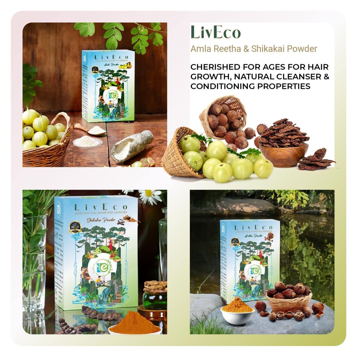 Introducing the LivEco Amla Reetha Shikakai Powder For Hair Combo Pack – A transformative blend of nature’s best for your hair. Harnessing the power of Amla, known for promoting hair growth and adding natural shine; Aritha, a gentle cleanser that removes impurities; and Shikakai, a natural conditioner that adds volume and vitality.