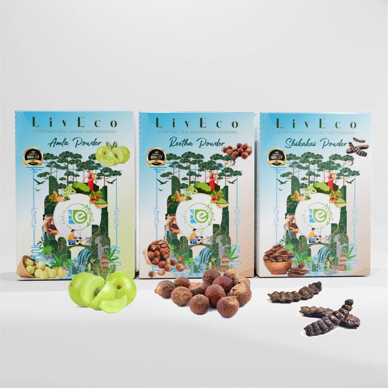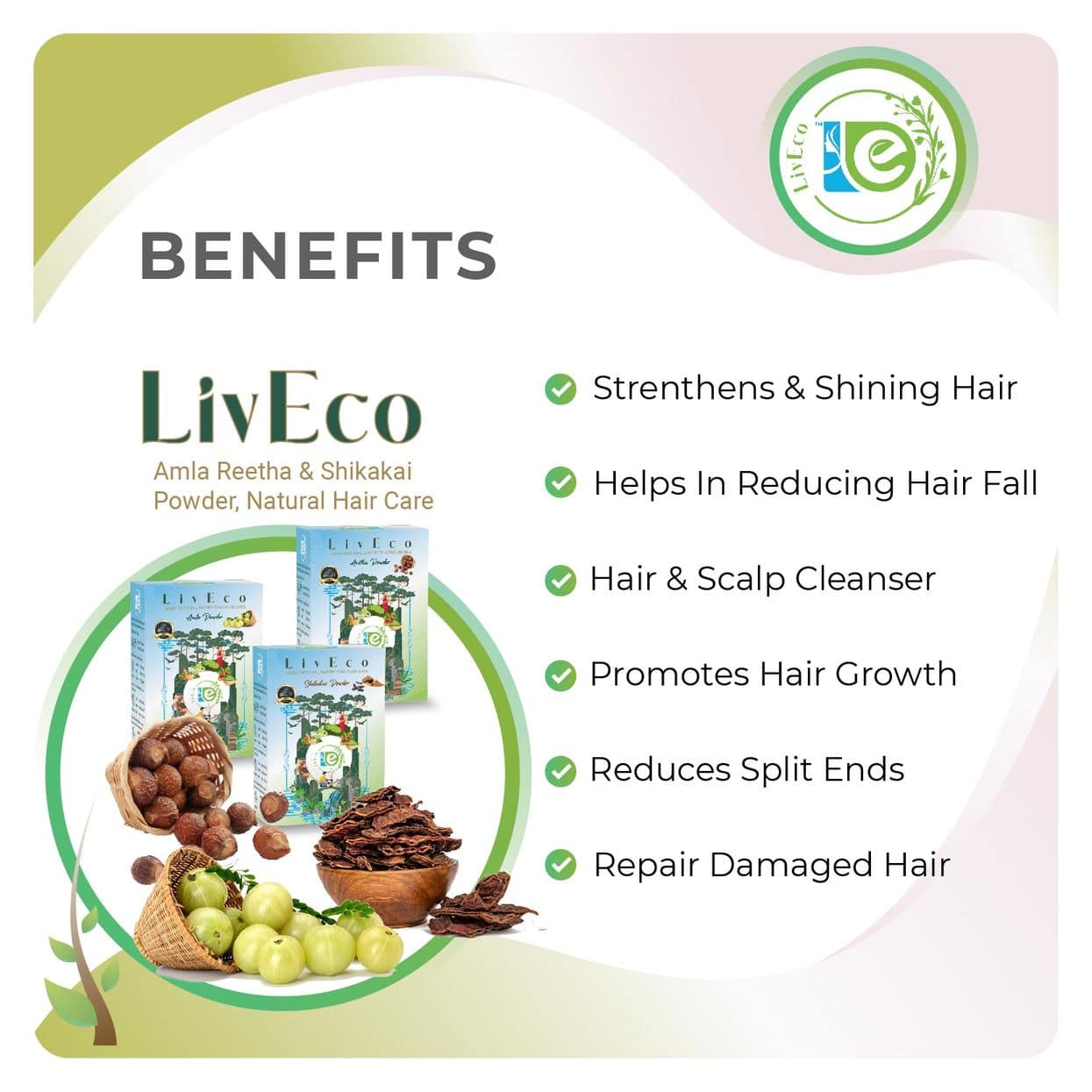 LivEco Amla Reetha Shikakai Powder For Hair Growth | DIY Organic Herbal Hair Mask
