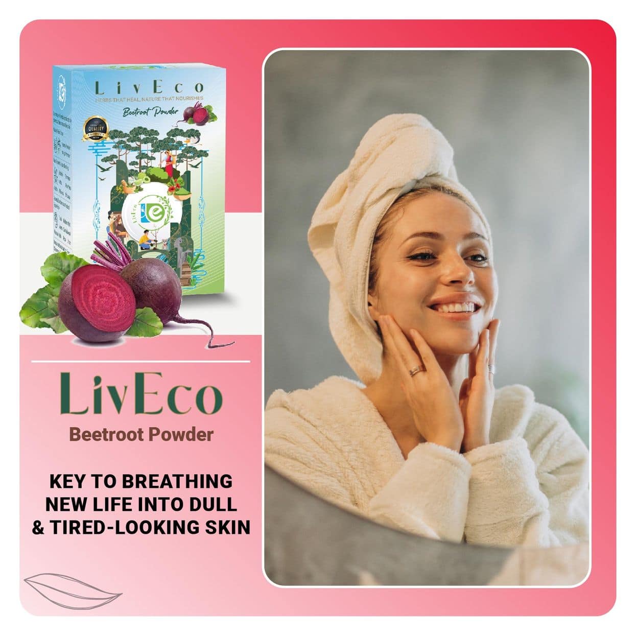 Youthful Glow: Age gracefully with LivEco Beetroot Powder. The vitamins and nutrients present in Beetroot promote skin elasticity, helping to reduce the appearance of fine lines and wrinkles. As a result, you can enjoy smoother, firmer, and more youthful-looking skin that radiates health and vitality.