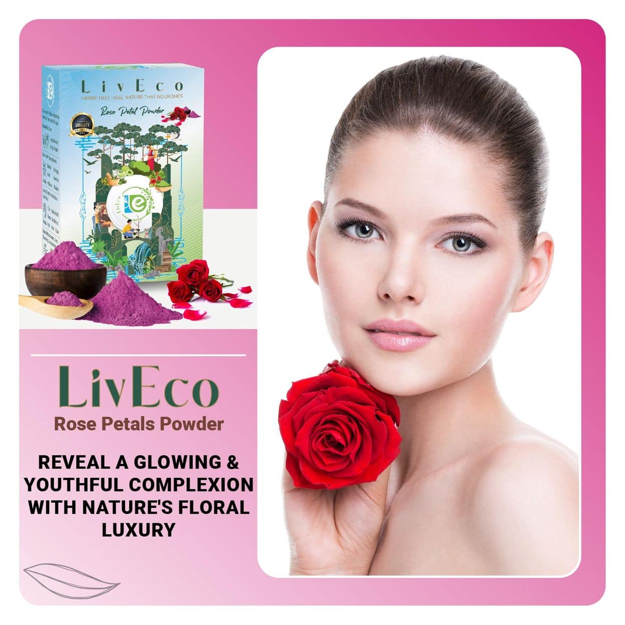 With LivEco Rose Powder, you’re well on your way to revealing a glowing and youthful complexion. Roses have long been celebrated for their skin-enhancing properties, and LivEco Rose Powder allows you to harness these benefits. It’s your secret to achieving a radiant and healthy look, often associated with well-cared-for skin.